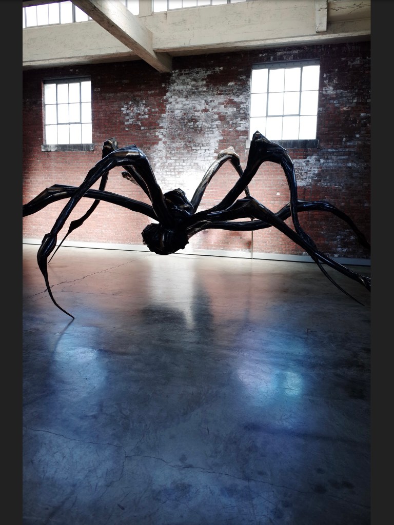 Just around the corner stands the enormous room that houses the giant spider sculpture, Maman. Its presence is both eerie and majestic. From the delicate tips of its legs, I almost hear soft sobbing—whispers of a story spun with care and sorrow.